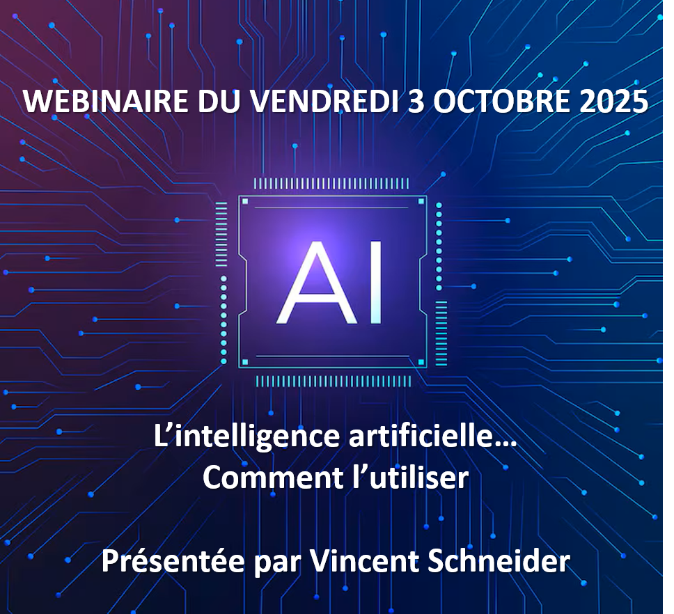 Webinaire du 3 Octobre 2025 L'Intelligence Artificielle... Comment l'utiliser par Vincent Schneider